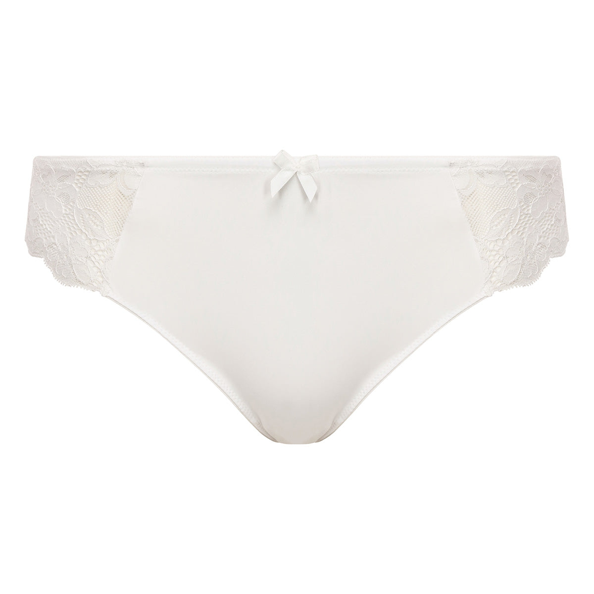 Esta braga de encaje con corte mini blanca, elegante y confortable te conquistará. Es ideal llevarla con el sujetador de media copa blanco de la línea Essential Elegance para lucir un conjunto de lencería hiper-elegante.