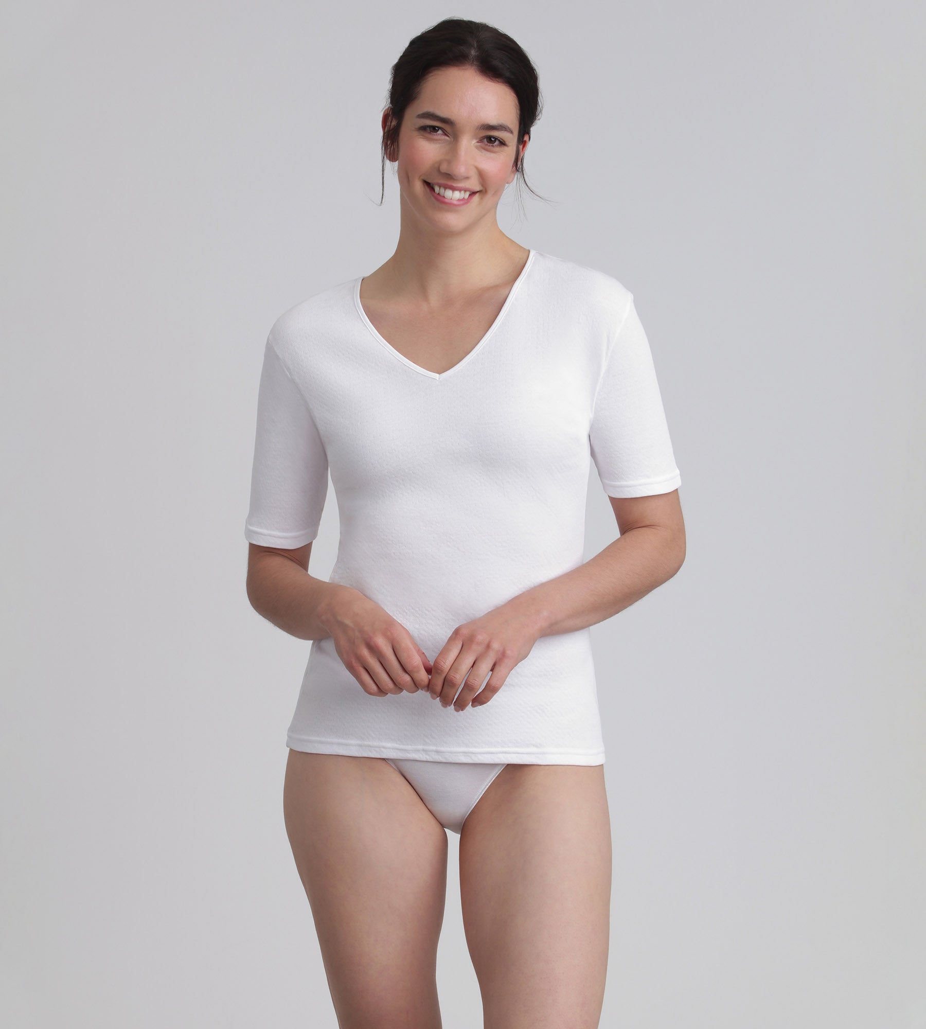 Adopta la camiseta de manga corta blanca Princesa Termal Natural para un estilo elegante en tu día a día! El diseño clásico permite conjuntarlo con cualquier pantalones o faldas. Su composición 100% de algodón te encantará: libertad de movimiento y comodidad a lo largo del día.