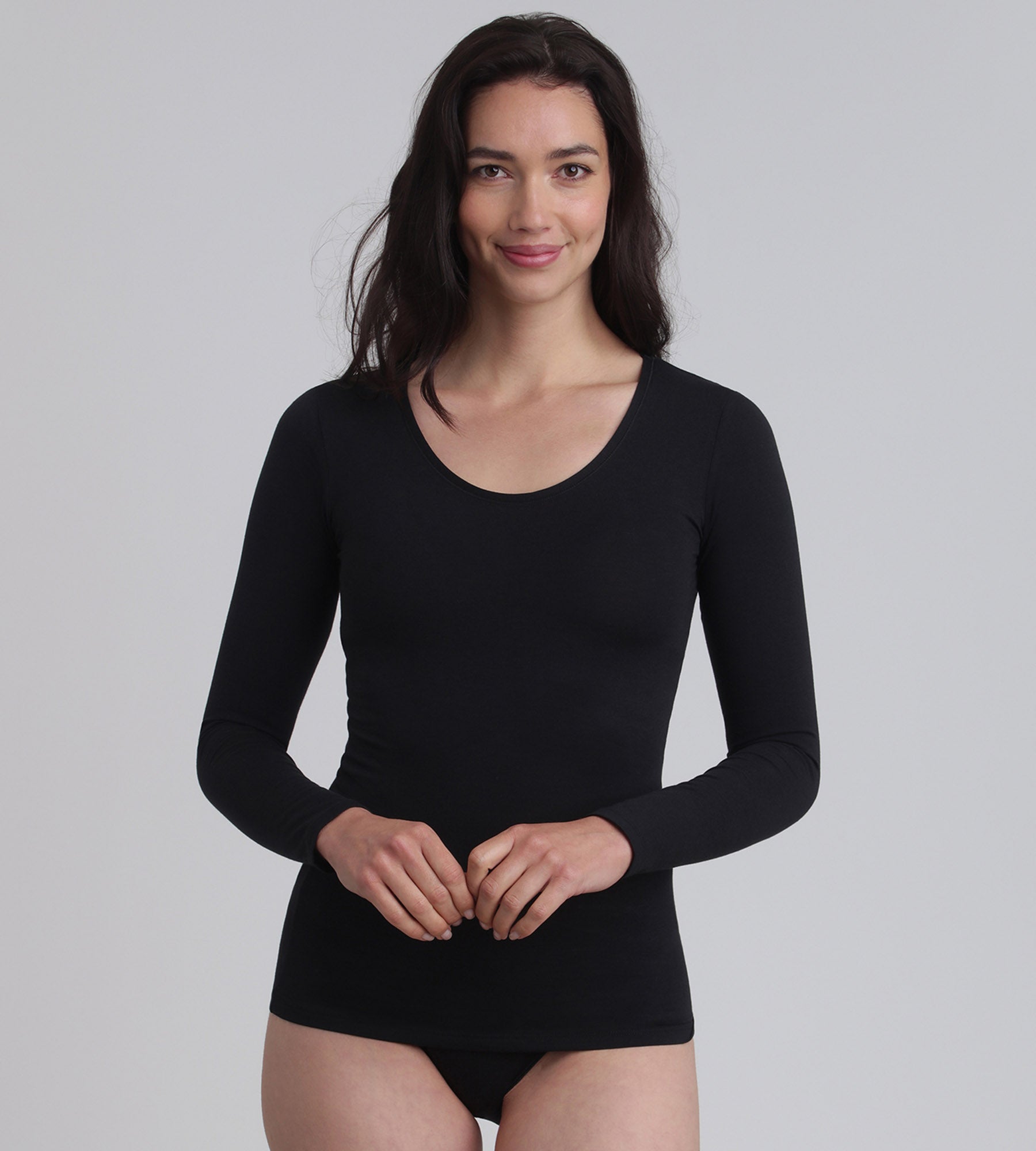Descubre la revolución del confort térmico con nuestra camiseta de mujer de manga larga y cuello redondo ligeramente escotado, fabricada con el tejido innovador Termaltech. Este material revolucionario aísla del frío exterior mientras mantiene una temperatura corporal constante. No solo genera y retiene el calor en su interior, sino que también sorprende por su ligereza, proporcionando una sensación de calidez. Al no tener costuras, la camiseta se convierte en la elección perfecta para usar con tus prendas más ajustadas sin preocuparte por las marcas o las molestias. Gracias a su diseño moderno y sus acabados planos, disfrutarás de una invisibilidad perfecta y una sensación de segunda piel que se adapta a todos tus movimientos.