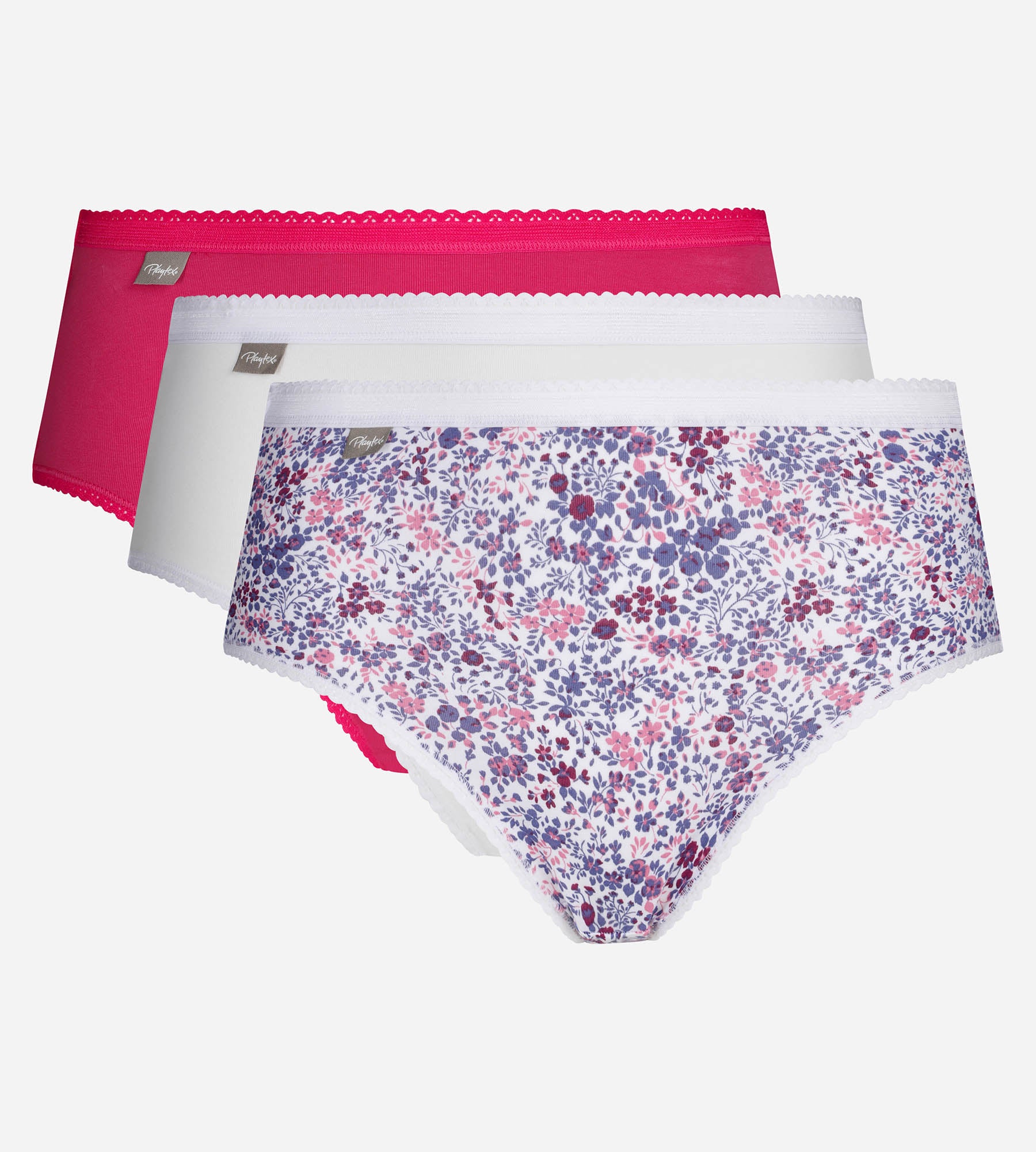 Descubre las braguitas Playtex® de la colección Algodón Stretch en este lote de 3. Los 3 colores aportan un toque alegre y moderno a tu lencería, a la vez que son fáciles de combinar con tus sujetadores favoritos. El algodón suave y elástico garantiza un ajuste perfecto, mientras que el pequeño ribete en la cintura le da un toque de discreta elegancia. Con su corte midi y su cobertura perfecta en las nalgas, estas bragas están diseñadas para pasar desapercibidas bajo la ropa, a la vez que ofrecen un contorno armonioso y una agradable sensación al tacto.