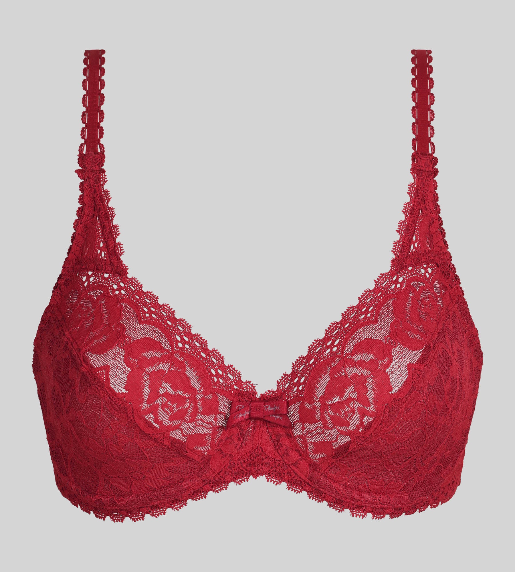 Para un conjunto armonioso e irresistible, combínalo con las bragas Flower Elegance Recyclé en rojo terciopelo, para un conjunto chic y ecológico.