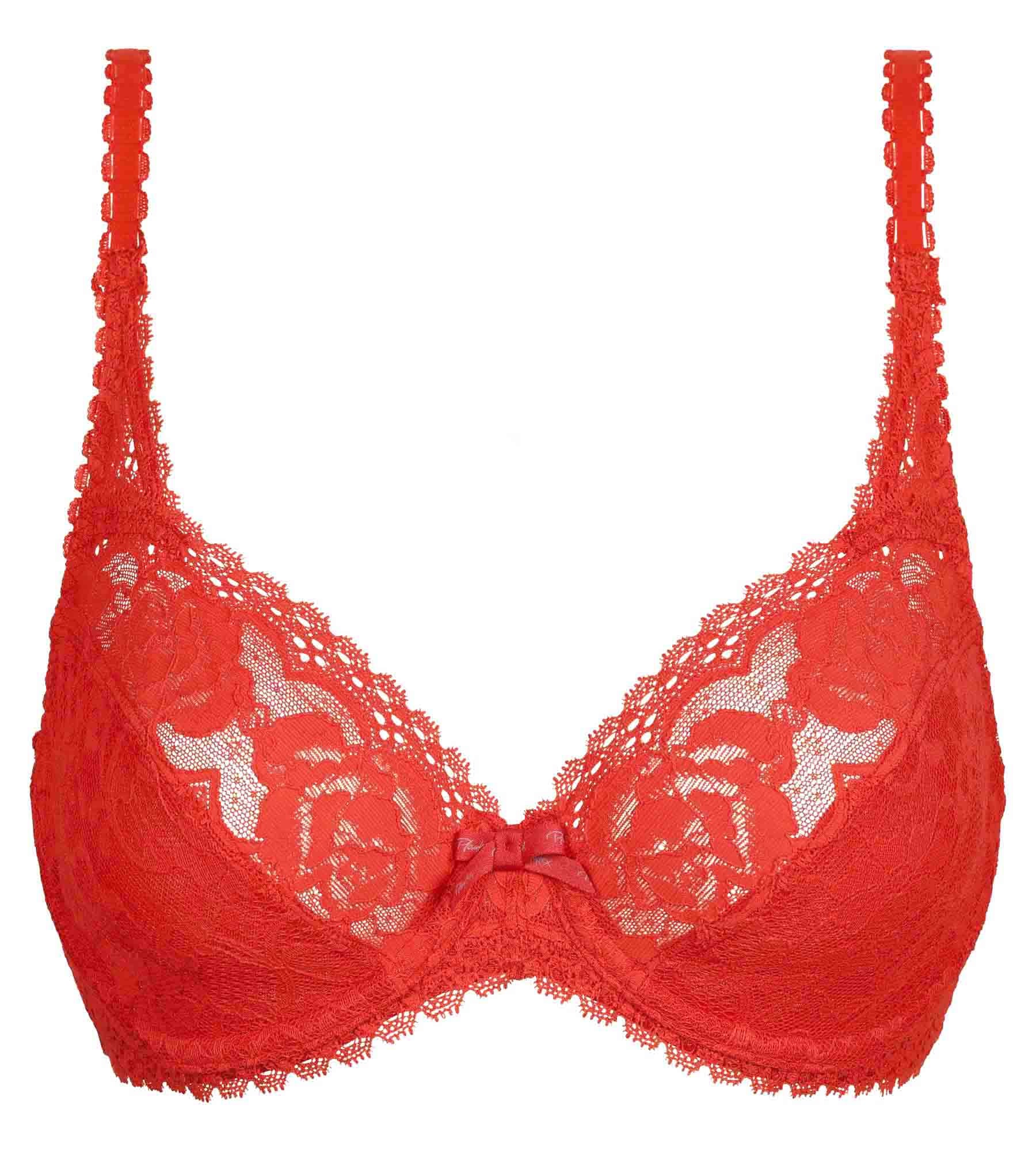El sujetador con aros granadina de la nueva colección Flower Elegance Reciclado es una pieza romántica y femenina que sabrá seducir a las mujeres en busca de lencería refinada. Su color rojo y su delicado encaje le dan un aspecto dulce y elegante. Las copas inferiores están forradas y presentan un triángulo de encaje entre las correas delanteras y las copas, garantizando una sujeción óptima. Este sujetador color granadina asegura una sujeción óptima del pecho durante todo el día con materiales fabricados con un 60% de poliamida reciclada. Además, un lazo con la marca añade un detalle elegante y distintivo.