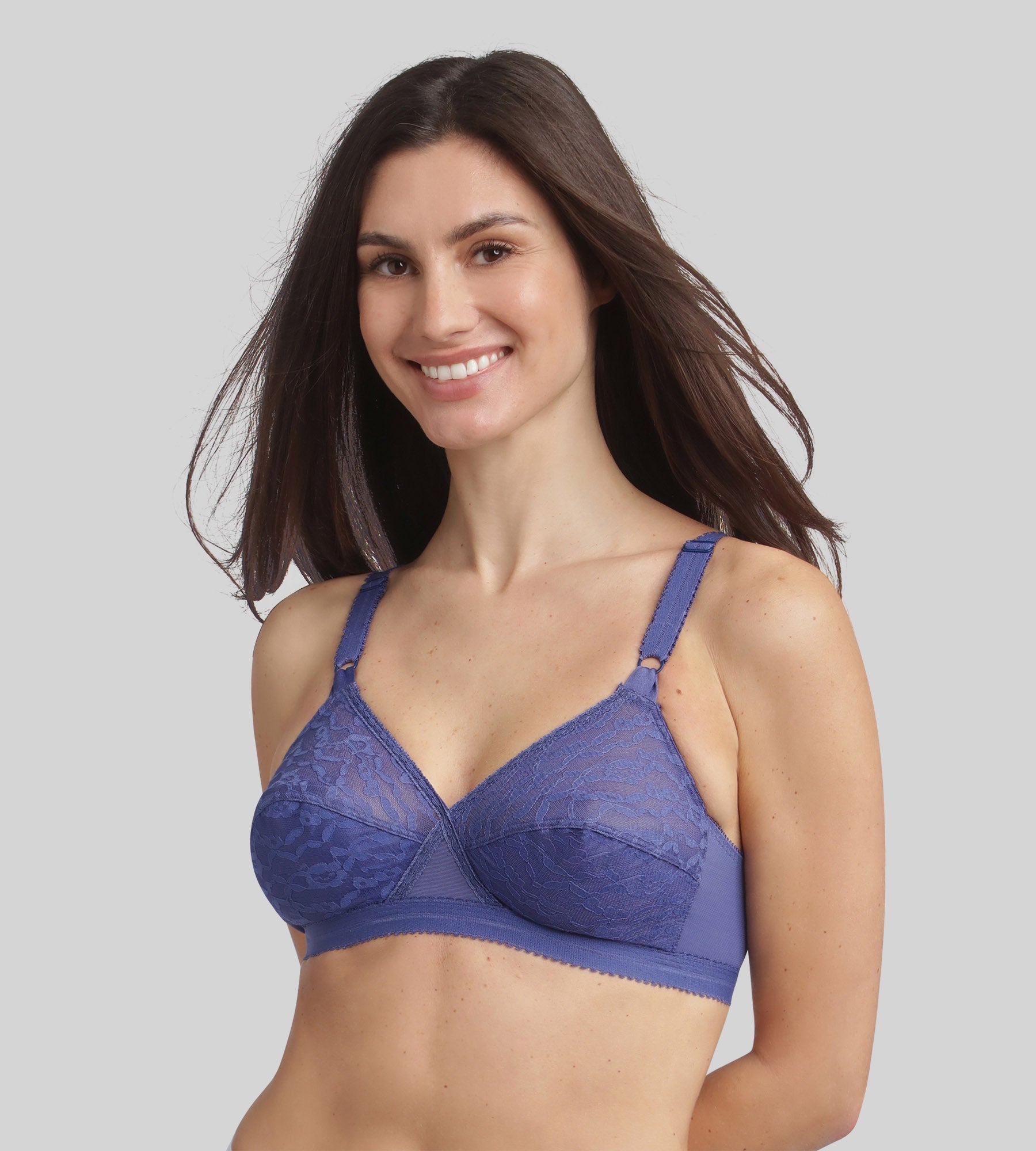 Combinando sujeción, feminidad y ligereza, el Cruzado Mágico 165 encarna la perfecta alianza entre la comodidad de Playtex® y la elegancia cotidiana. Gracias a su icónica estructura en cruz, este modelo separa delicadamente el pecho con un fino encaje, ofreciendo una sujeción perfecta y natural. Las copas cubiertas, con un corte transversal clásico, garantizan un contorno armonioso y realzan todos los pechos. Las bandas elásticas interiores y exteriores están específicamente diseñadas para ofrecer comodidad y sujeción a los pechos generosos. La parte superior de la copa, de malla rígida transparente, junto con este brillante color azul, aporta un sutil toque de feminidad. Los tirantes anchos ajustables en la parte delantera permiten un fácil ajuste, y la espalda ancha en forma de U, combinada con dos alturas de cierre, garantiza una sujeción impecable durante todo el día.