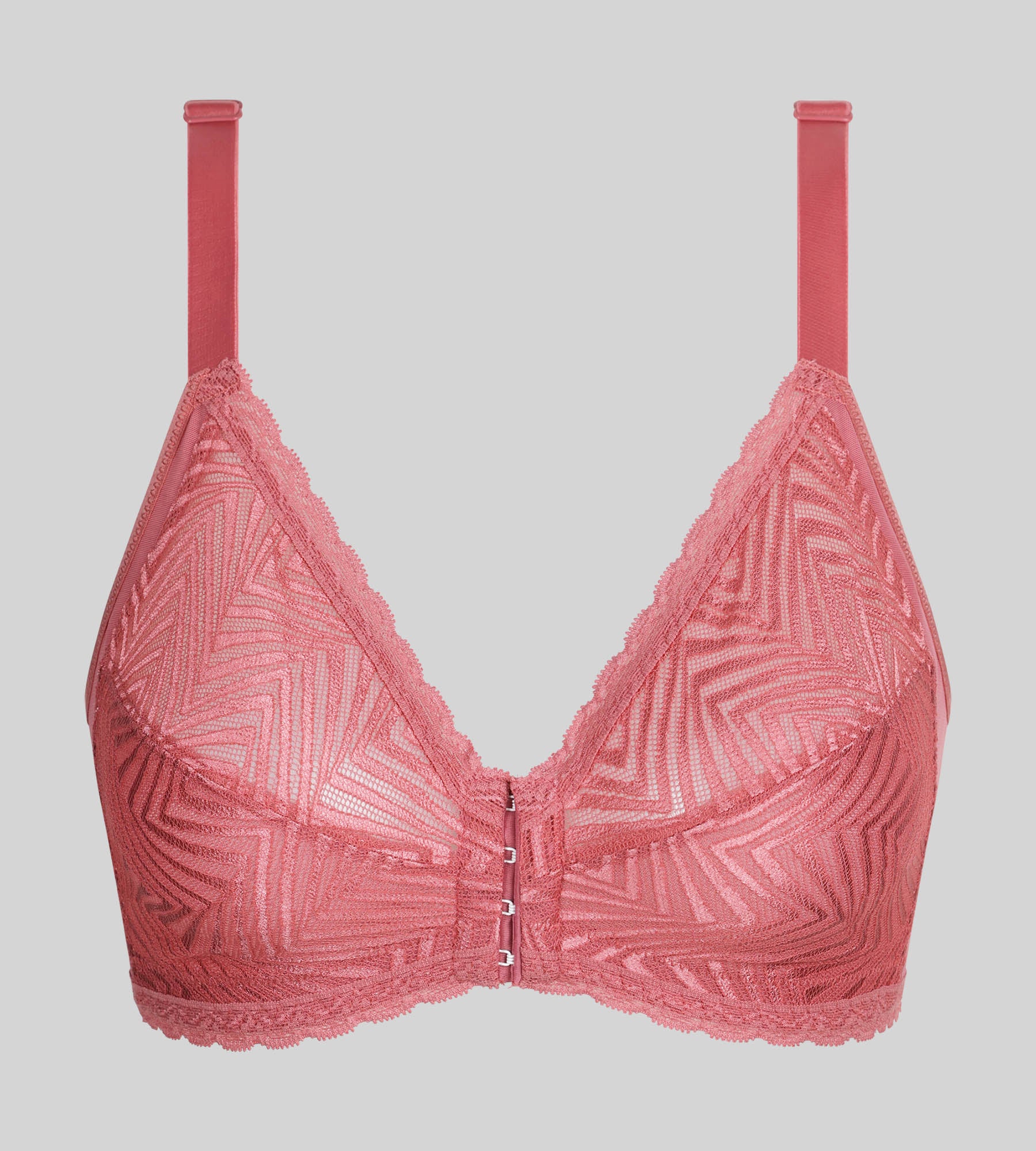 El sujetador con abertura frontal de la línea Ideal Posture en color rosa combina a la perfección sujeción, comodidad y feminidad, aportando modernidad a tus conjuntos. Sin aros, está especialmente indicado para pechos generosos, gracias a su innovador diseño que distribuye el peso del pecho y mejora la postura. La espalda cruzada con bandas Powernet ayuda a mantener los hombros hacia atrás, lo que alivia la tensión dorsal y redefine la silueta. Su moderno encaje gráfico, combinado con la forma bralette, añade estilo y elegancia a este modelo ergonómico, mientras que la abertura delantera facilita su colocación. Para un conjunto armonioso, combina este sujetador con las braguitas Ideal Posture a juego y explora los demás colores de la línea para completar tu colección. Disfruta de comodidad, una postura perfecta y un look sublime en tu día a día.