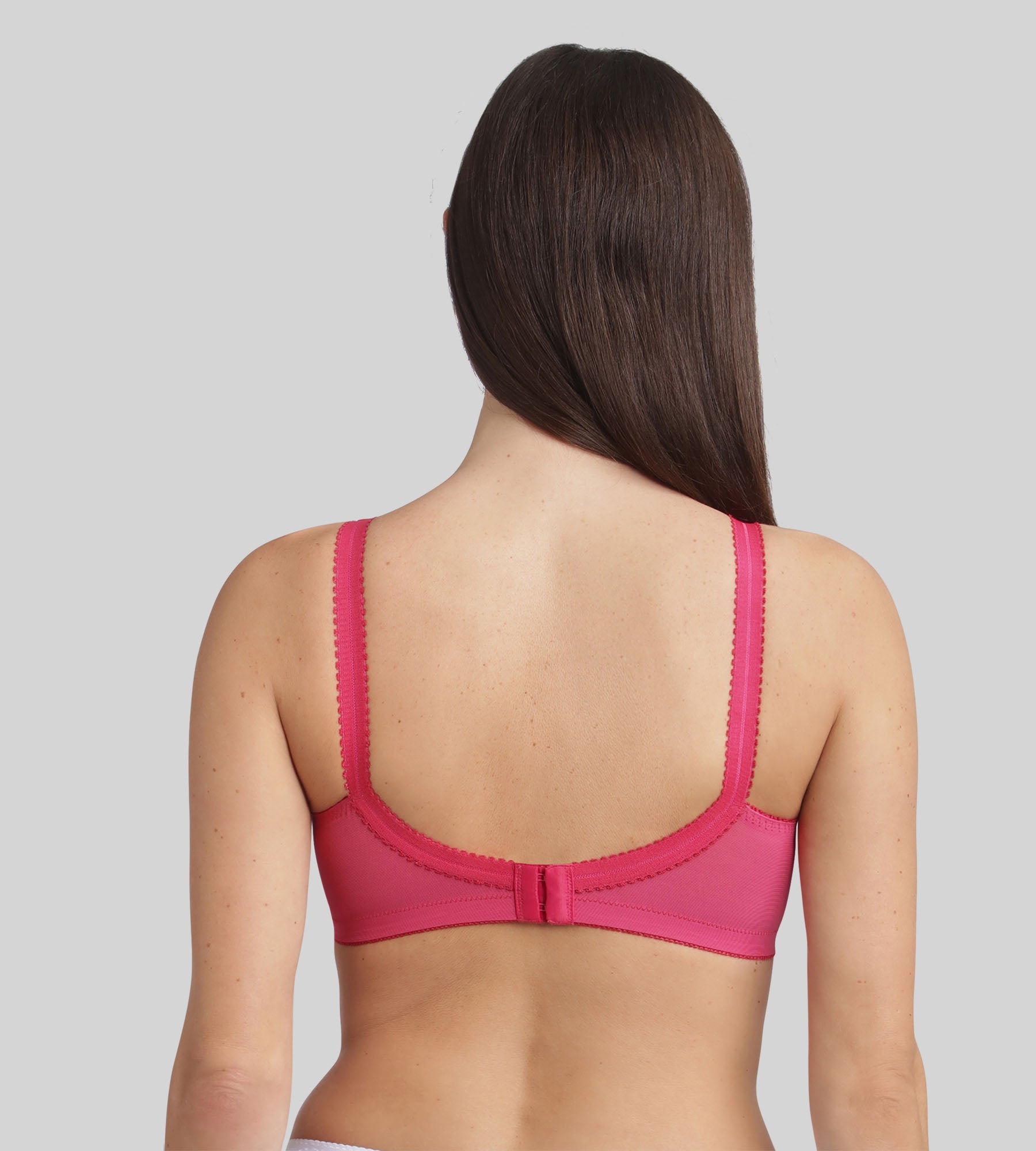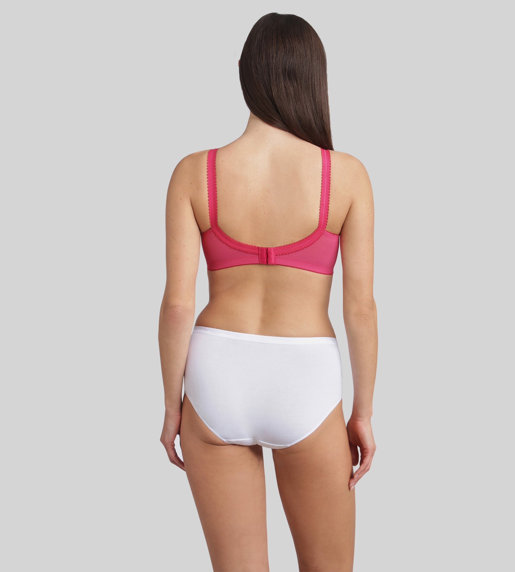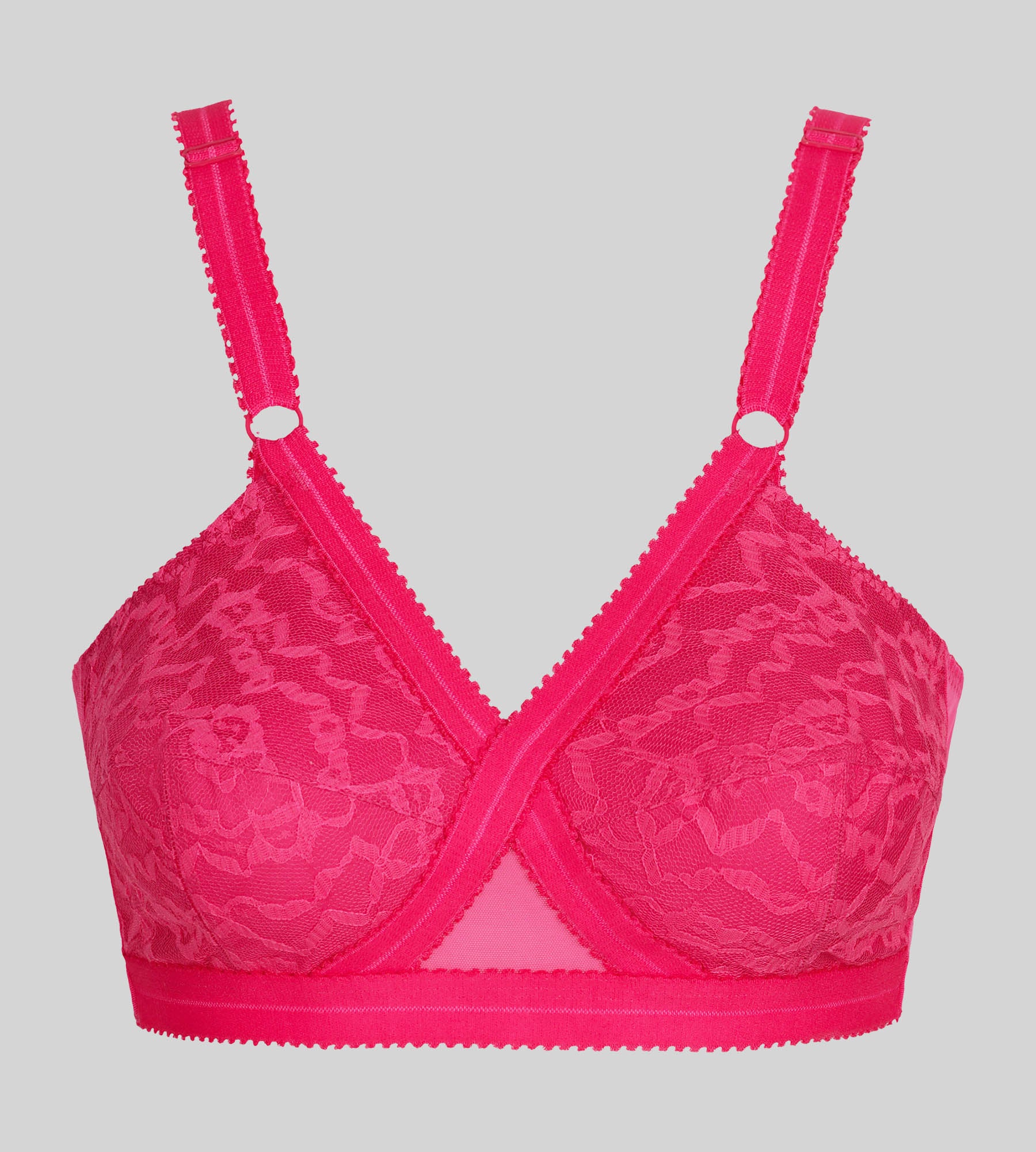 Icono de sujeción y comodidad, el sujetador Cruzado Mágico 556 se reinventa en un nuevo color frambuesa, vibrante y femenino. Este modelo sin aros combina suavidad, elegancia y sujeción gracias a su icónica construcción en cruz, que separa naturalmente el pecho y garantiza una sujeción perfecta durante todo el día. Las copas envolventes de encaje están forradas de algodón rígido, para un contorno armonioso y una sujeción impecable. Los tirantes anchos, ajustables en la parte delantera, y los elásticos interiores y exteriores han sido especialmente diseñados para adaptarse a todas las morfologías. Este modelo ha sido diseñado para ofrecer una forma natural que se adapta a todos los pechos, combinando la comodidad de una sujeción diaria con la feminidad de un elegante encaje.