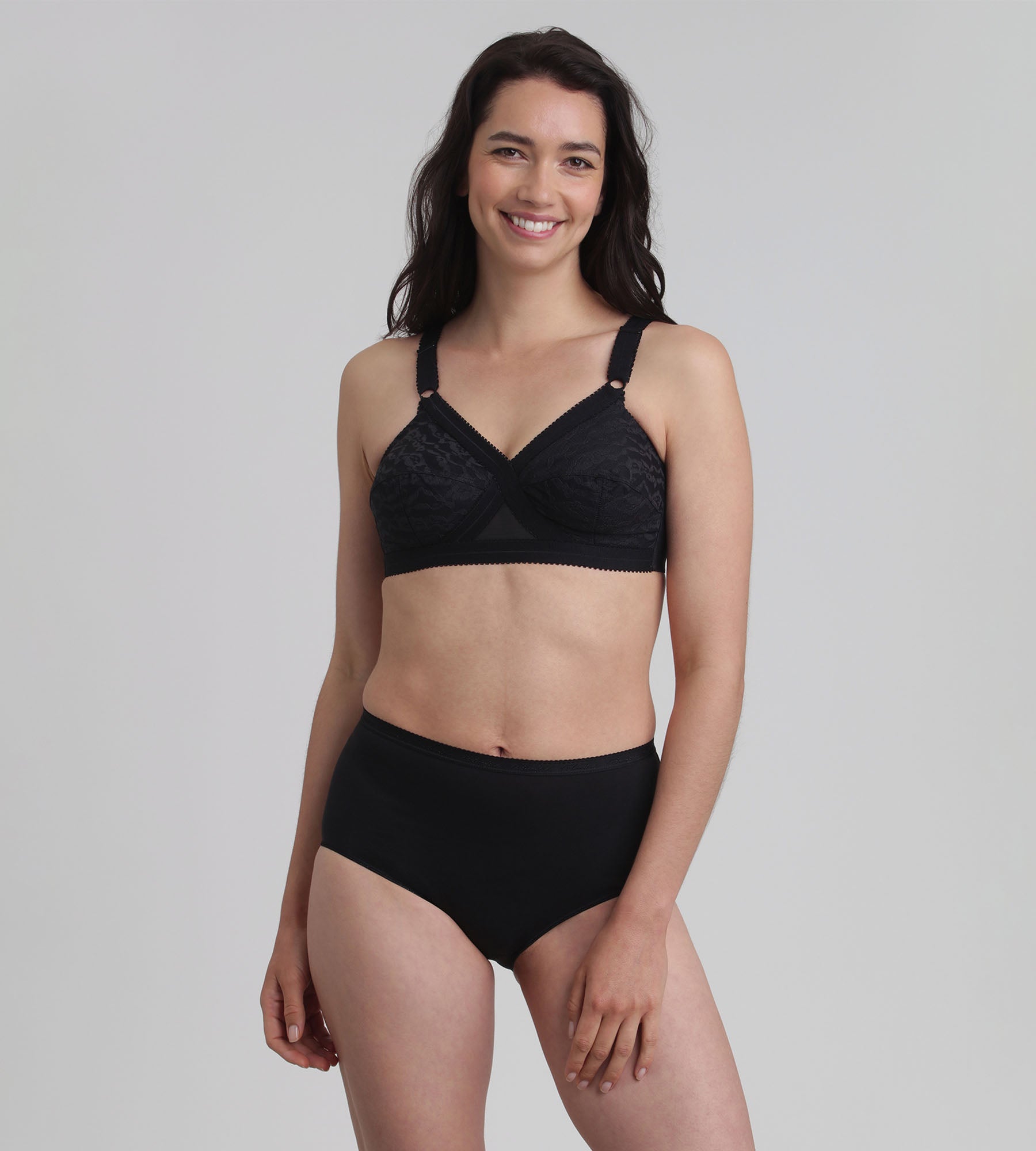 La línea Cruzado Mágico 556 está compuesta por cuatro sujetadores clásicos de la marca Playtex®. El sujetador sin aros en su versión negra combina elegancia y eficacia. Se conjunta fácilmente con todas las bragas negras de algodón.