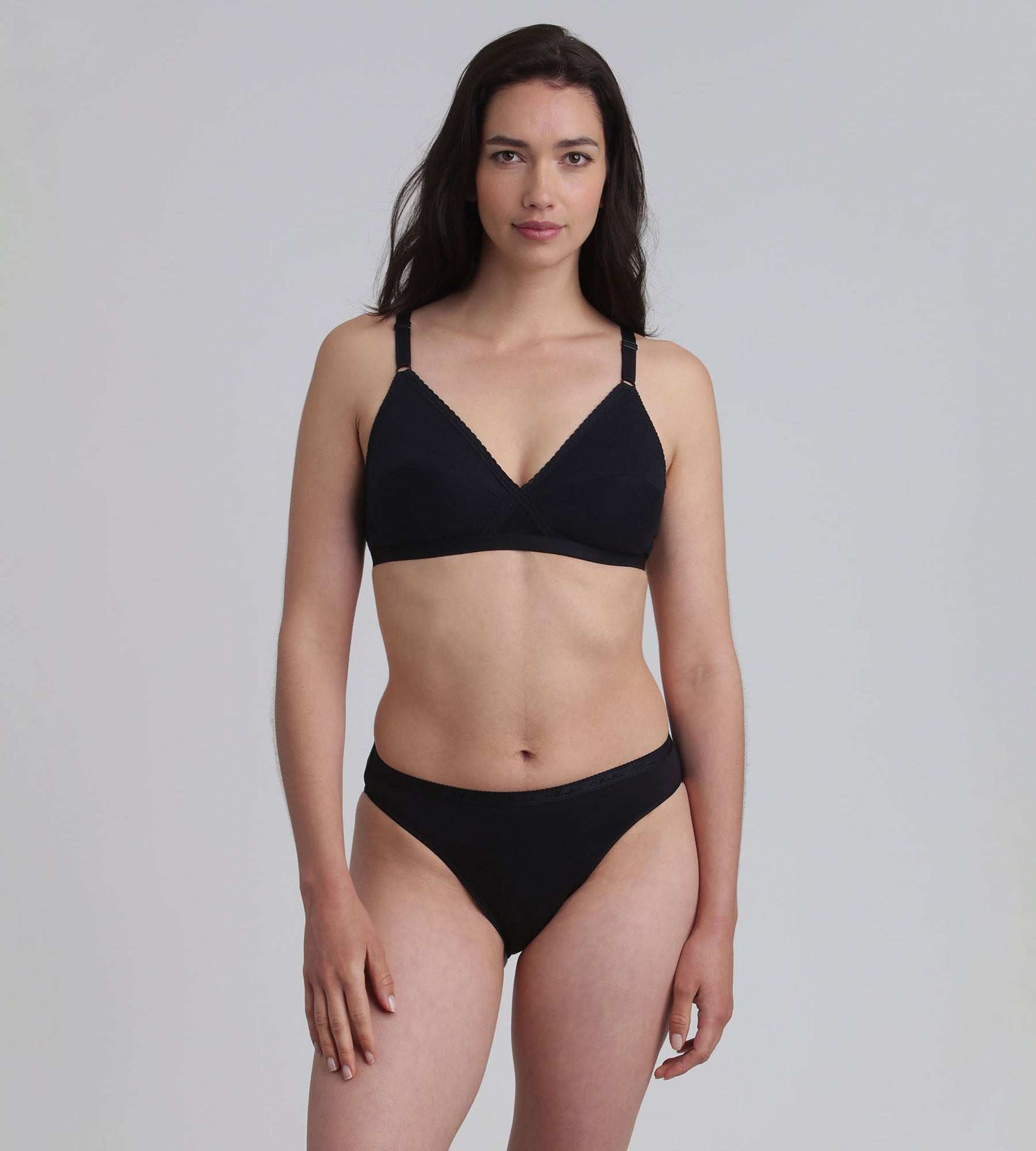 El sujetador sin aros negro de la colección Essential Support Algodón es la combinación perfecta de comodidad y soporte natural. Diseñado para ajustarse perfectamente al pecho, ofrece una sujeción cómoda y natural durante todo el día. La innovadora tecnología de cruzado mágico proporciona un soporte excepcional, eliminando la necesidad de aros y permitiendo una sensación de libertad y confort inigualables. La tela de algodón utilizada en este sujetador asegura una suavidad extrema y una transpirabilidad óptima. Los tirantes delanteros ajustables facilitan un ajuste personalizado, adaptándose a las necesidades de cada mujer.